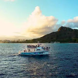 Ocean and You is the ultimate Waikiki sunset party cruise. Board the double-decker boat and explore its wraparound seating and Titanic-style