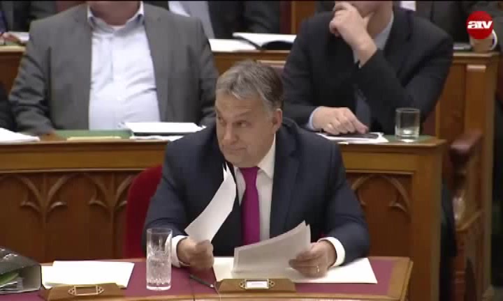 A magyar miniszterelnök hallgatja Demeter Márta interpellációját