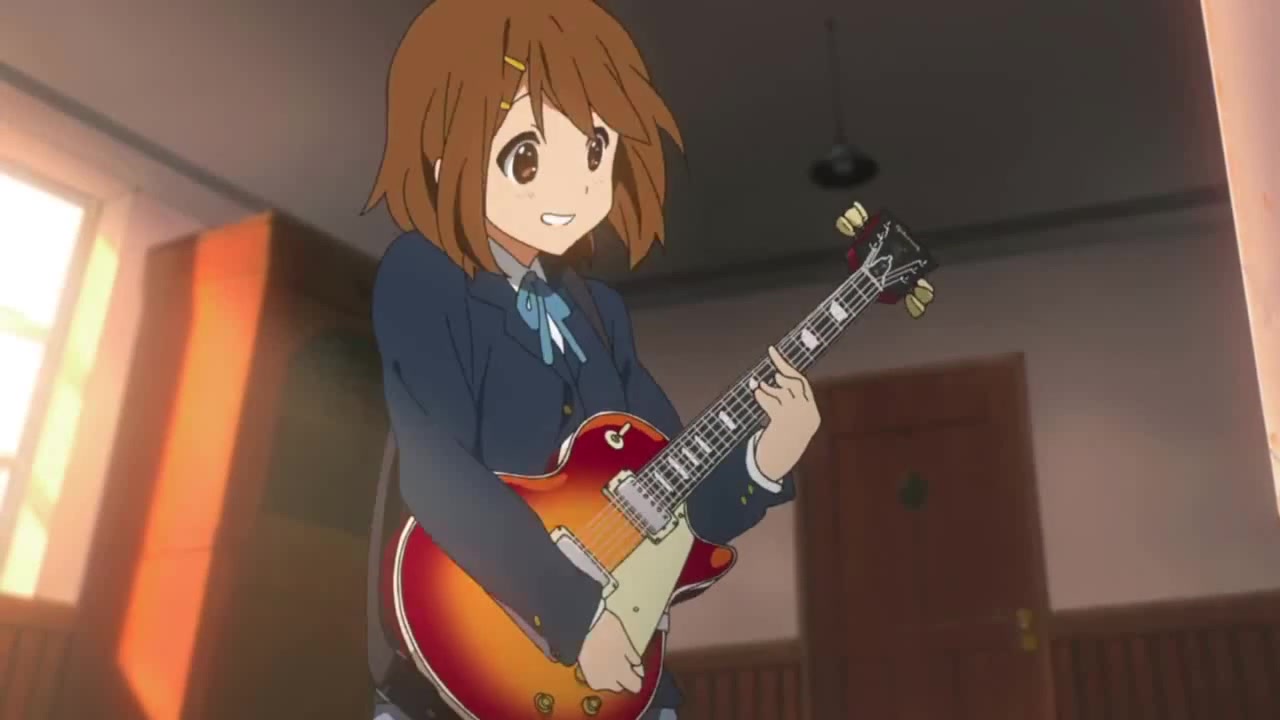 Юи Хирасава жжет на гитаре...
