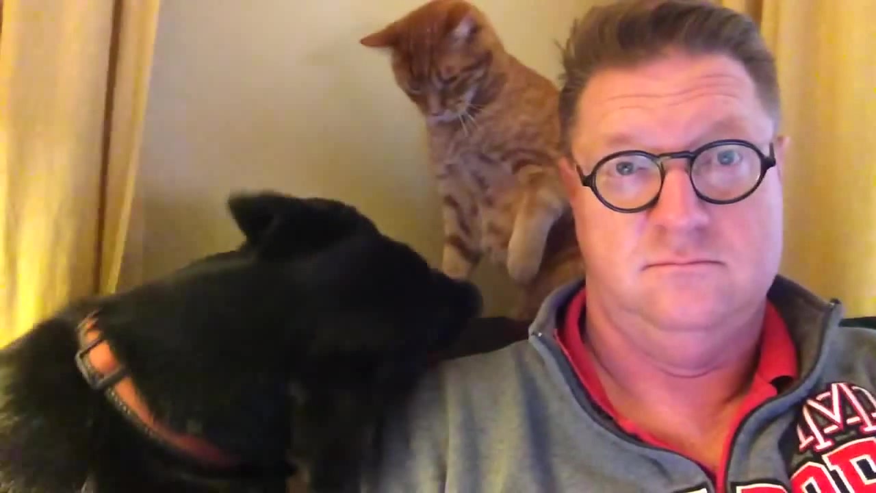 cat and dog interrupts owners sunday morning