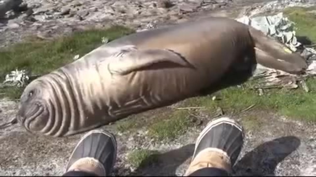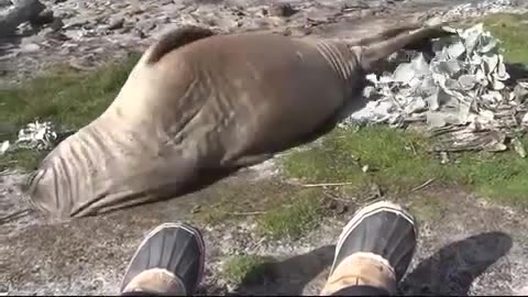 Elephant Seal Rolls Down Hill