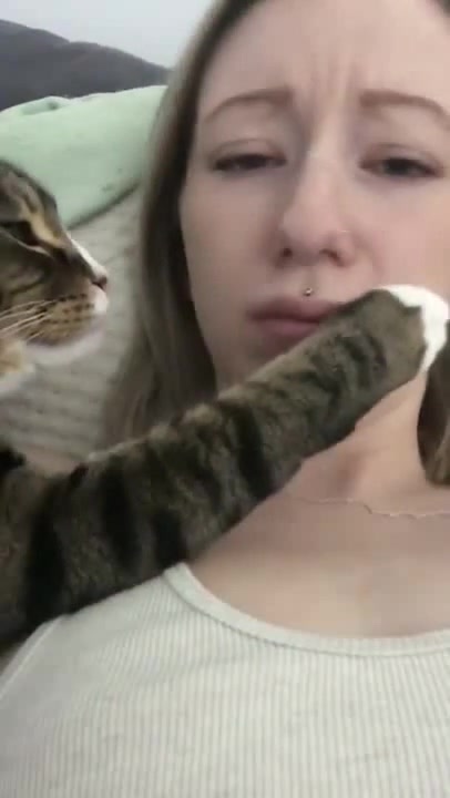 Cat Awkwardly Touches Owner