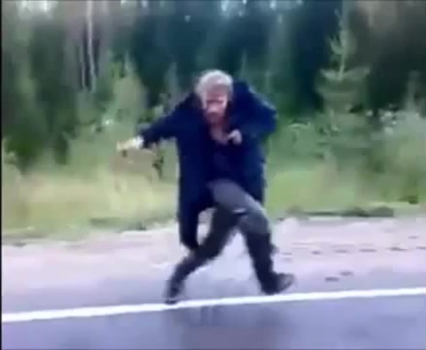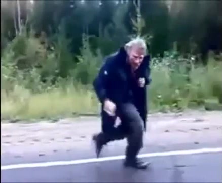 Прикол дед бежит за машиной. Бомж танцует за еду. Одаренный Бомжара.
