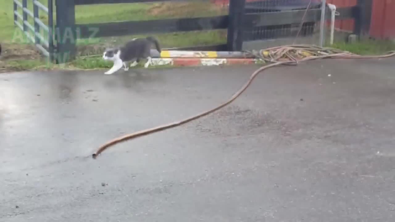 cat attacks dog