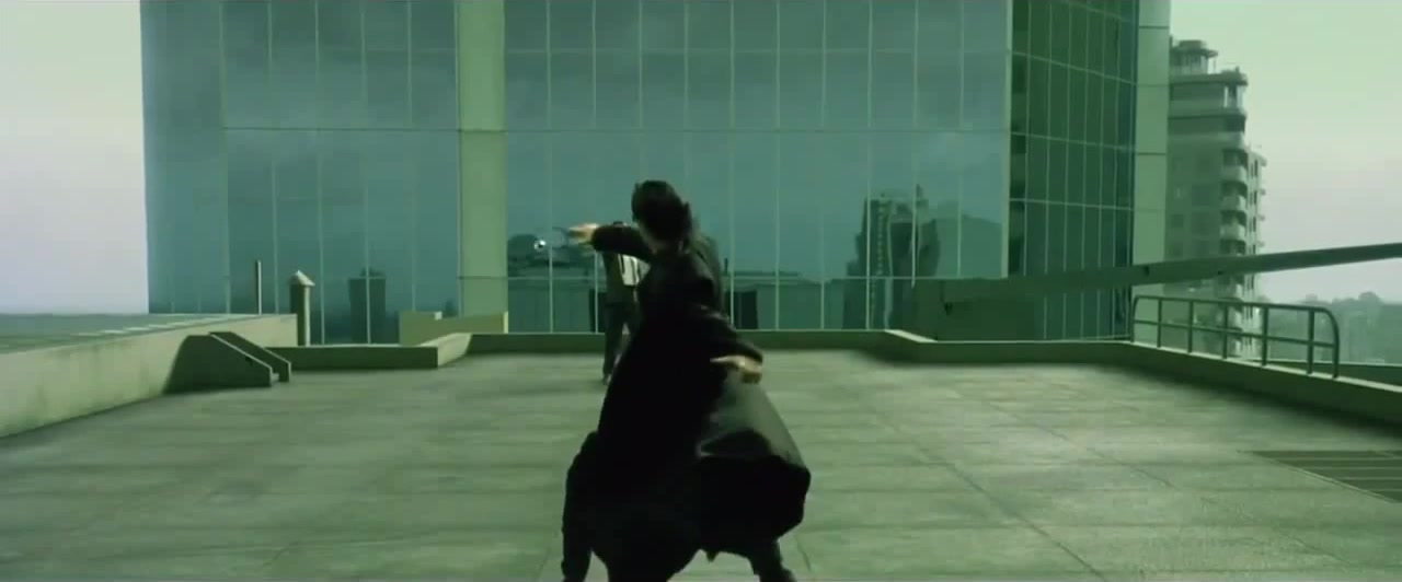 Нео уворачивается от пуль. Матрица (1999)