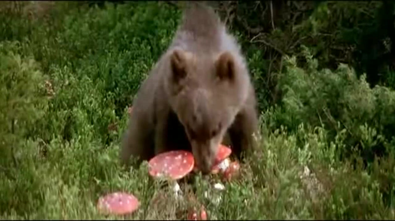 медведь ест мухоморы