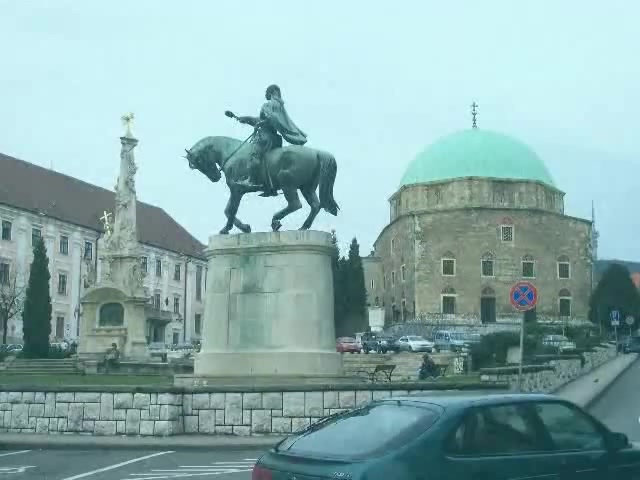 Apa kocsit hajt a városban