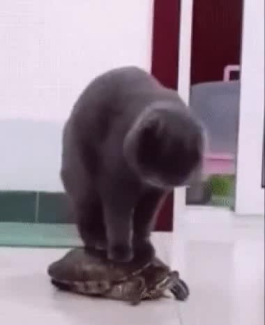 cat on a turtle