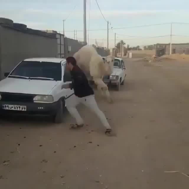 hyenas filming their human friend's being chased by a camel