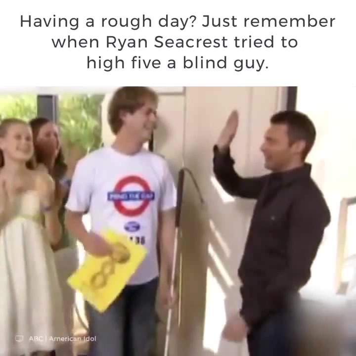Ryan Seacrest high fives blind guy. π