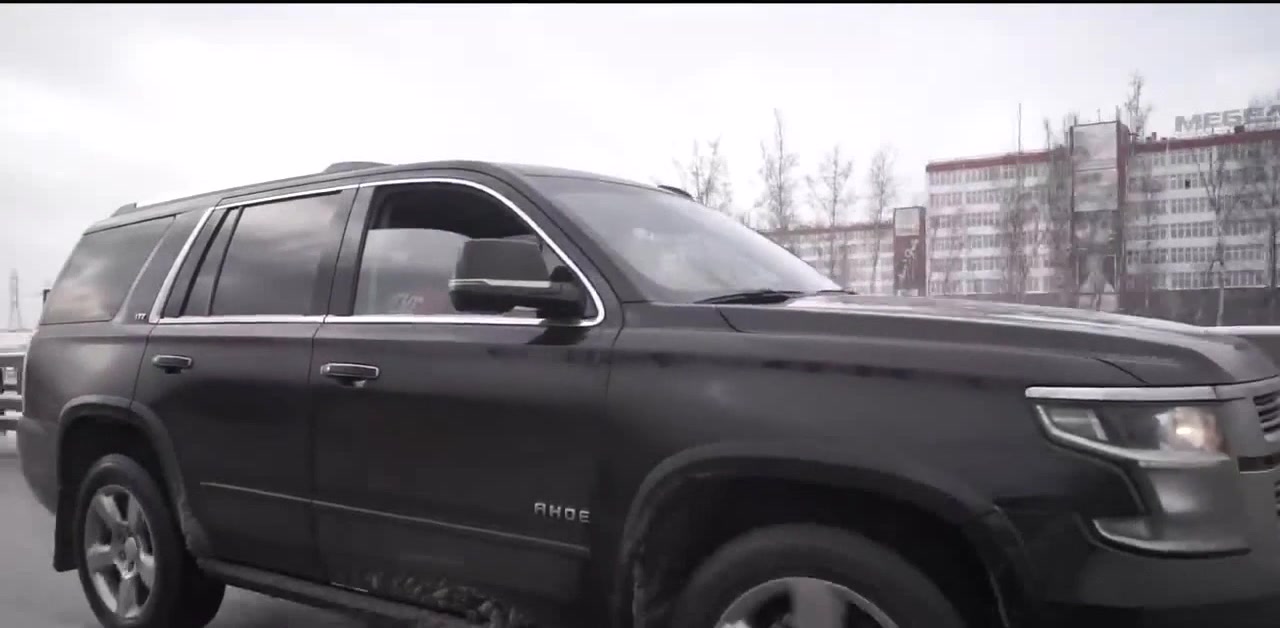 По садовому шуршит большой чёрный джип