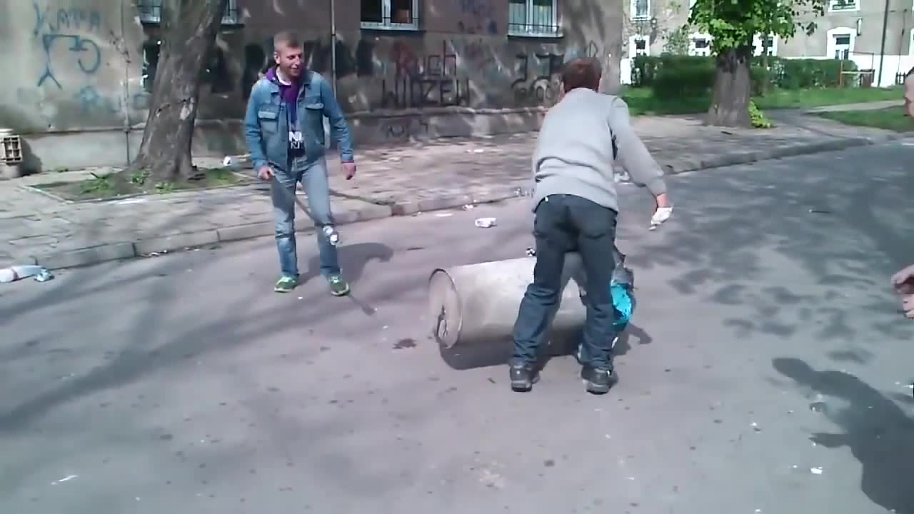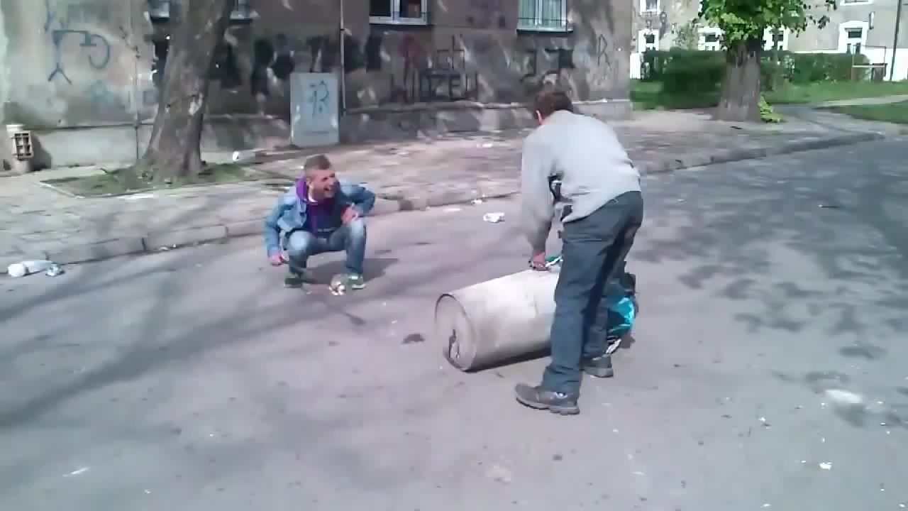 Trash Can For Cannon,Polish Workers Turn Trash Can Into Cannon funny video