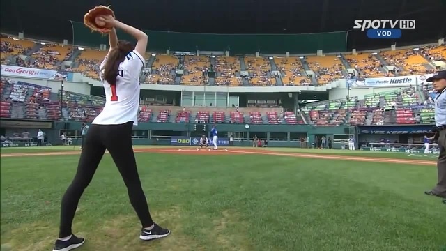 South Korean rhythmic gymnast Shin Soo-ji's first pitch