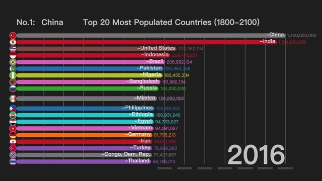 Top 20 Countries by Population History & Projection (1800 to 2100)!