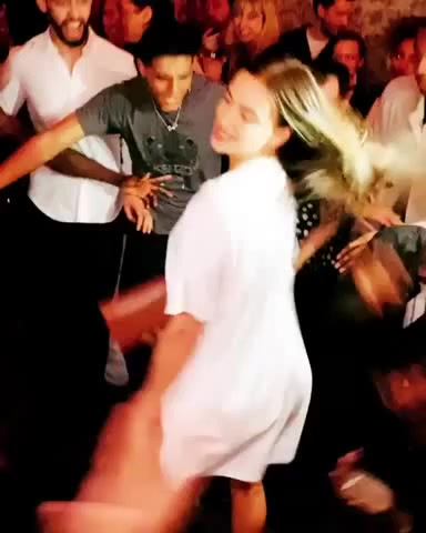 Dancing Irina Shayk during Burberry's afterparty