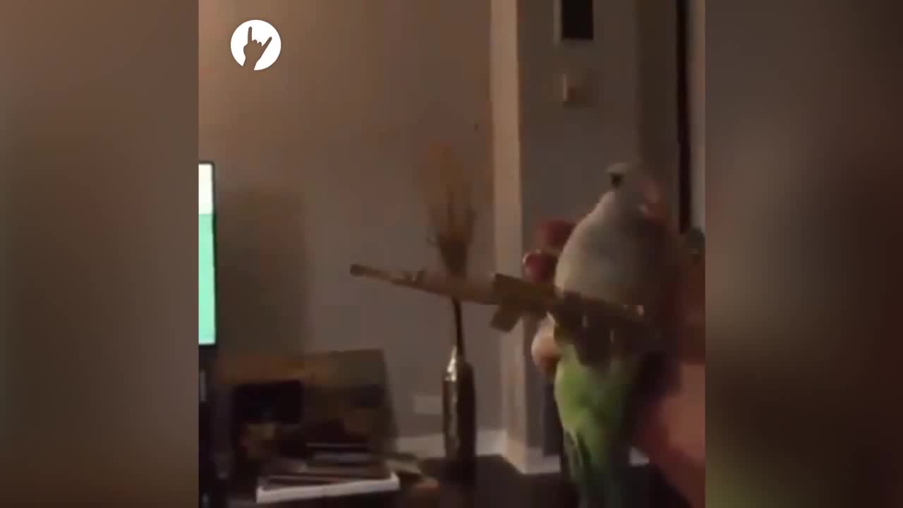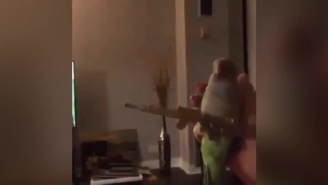 Попугай с автоматом | Попугай стреляет из автомата | Parrot with a gun
