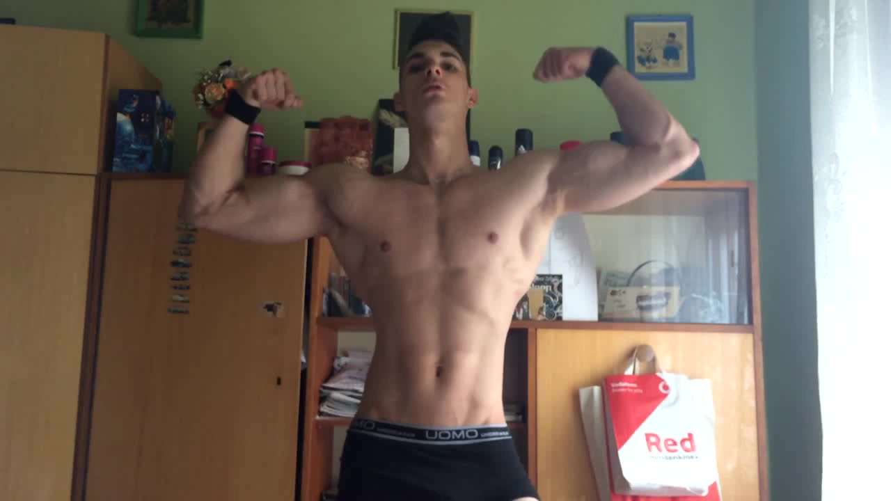 17 Years Old Aesthetic Ripped Teen Bodybuilder Flexing Muscles