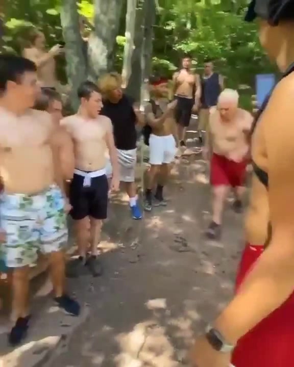 дедушка прыгает в воду