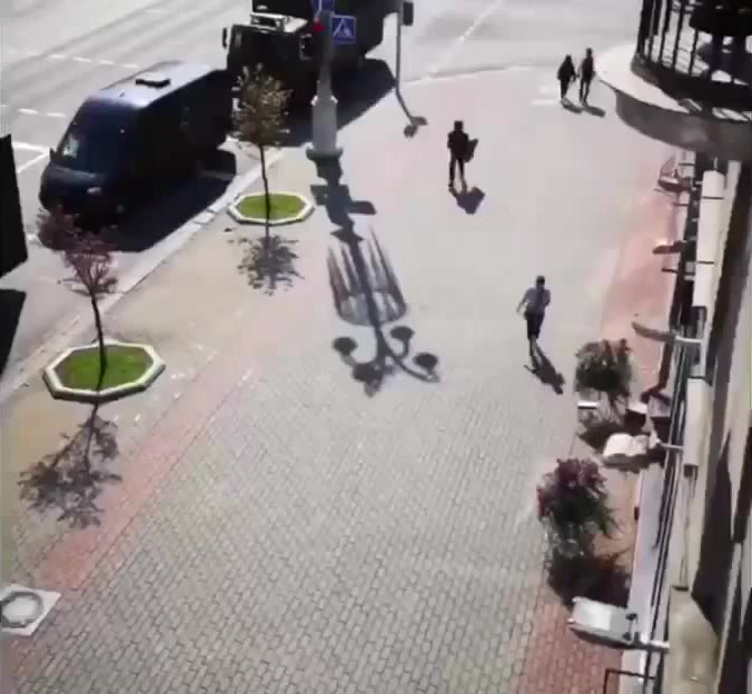 Minsk protests - policeman runs