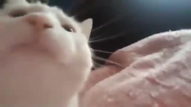 Кот качает головой под музыку.