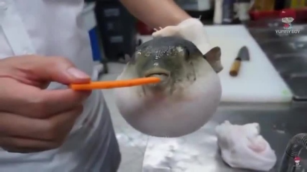 Рыба фугу ест морковь