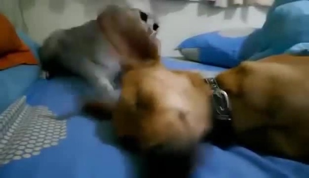 кот бьет собаку