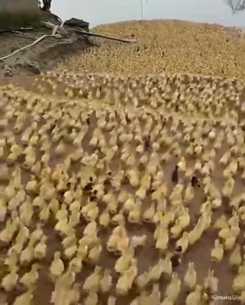 Утята бегут купаться