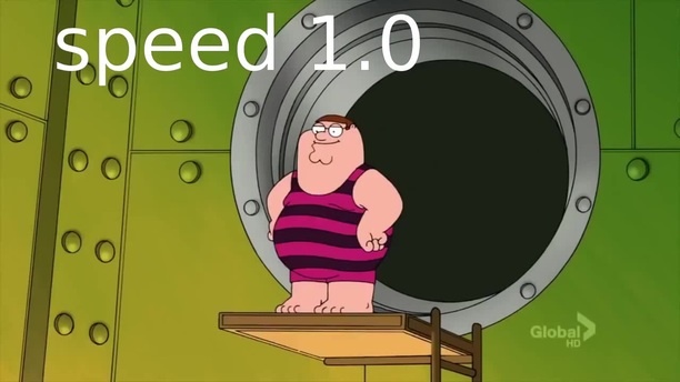 Peter Griffin dives into a room full of gold coins, but at different speeds