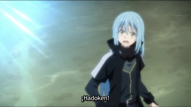 Veldora Tempest tira el hadouken, Shoryuken y Tatsumaki Senpuu Kyaku de Ryu/Ken de Street Fighter