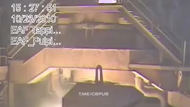 бросок бутылки воды в расплавленый чан железа