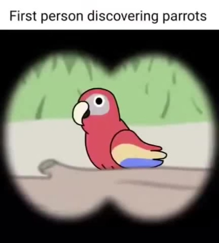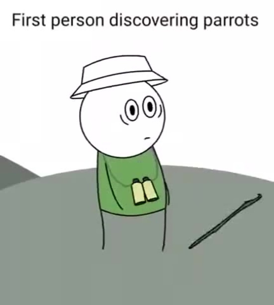 First person discovering parrots