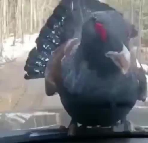 Бесстрашный глухарь против водителя