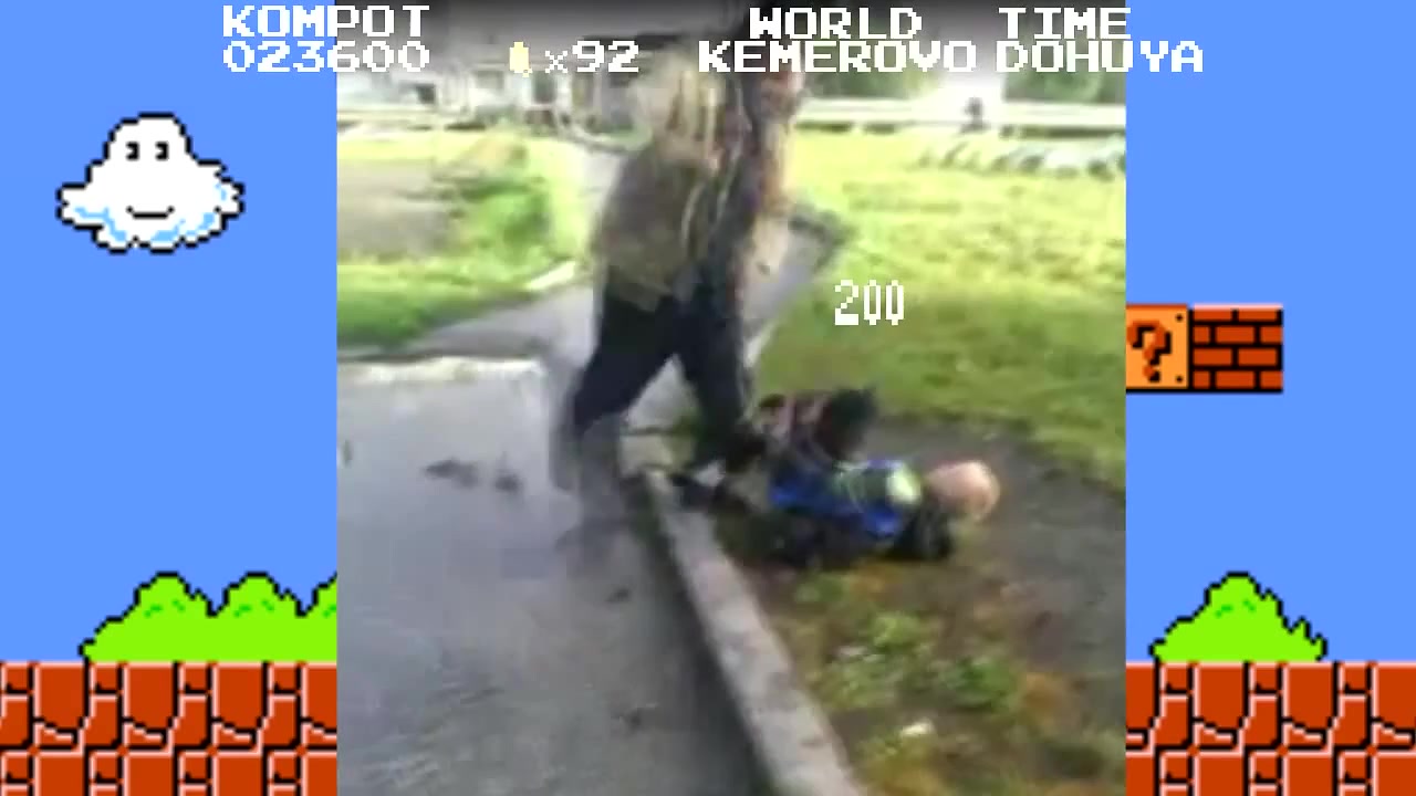 Бомж по прозвищу Компот избивает школьника (Mario Style)