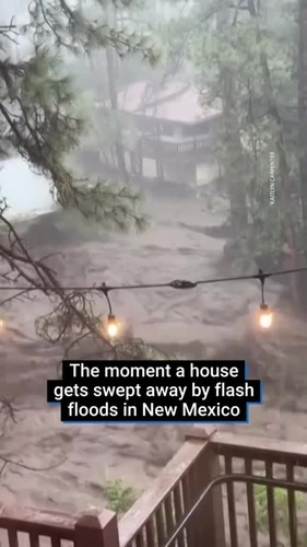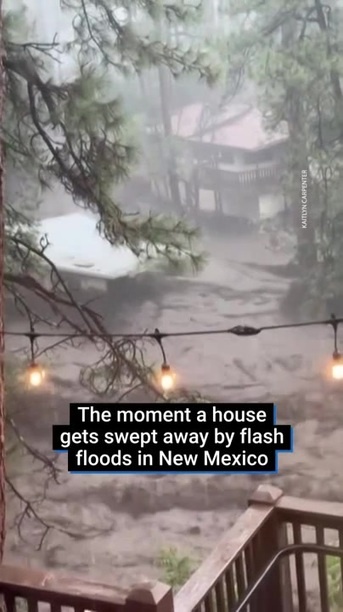 Момент, когда дом уносит внезапным наводнением в Нью-Мексико