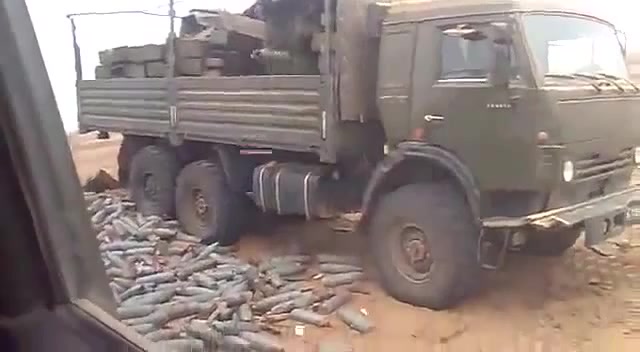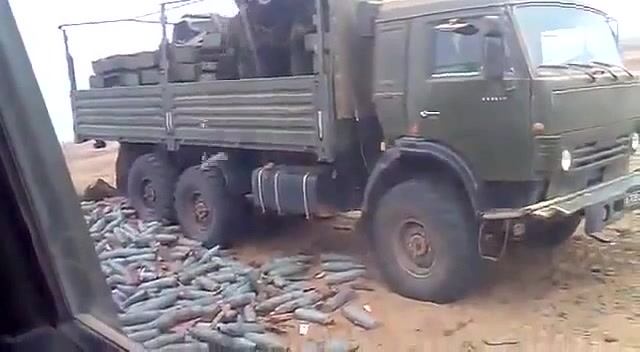 военные аккуратно разгружают снаряды с машины (military carefully unload ammunition from a machine)