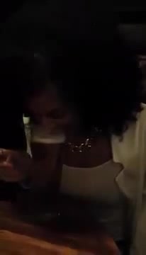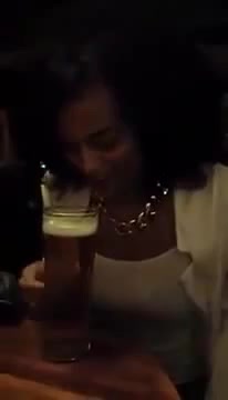 Девушка пьет пиво без рук