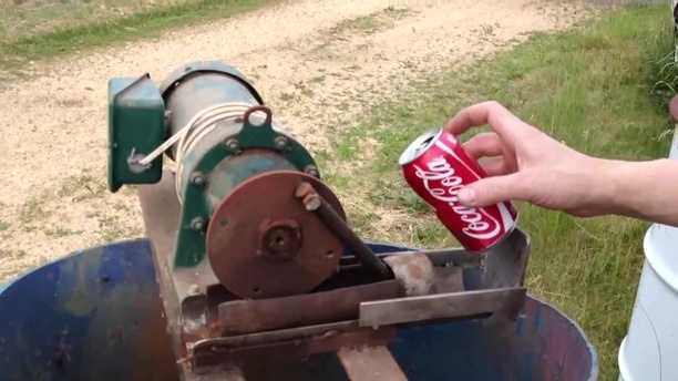 Aluminum pop can Pitman drive crusher