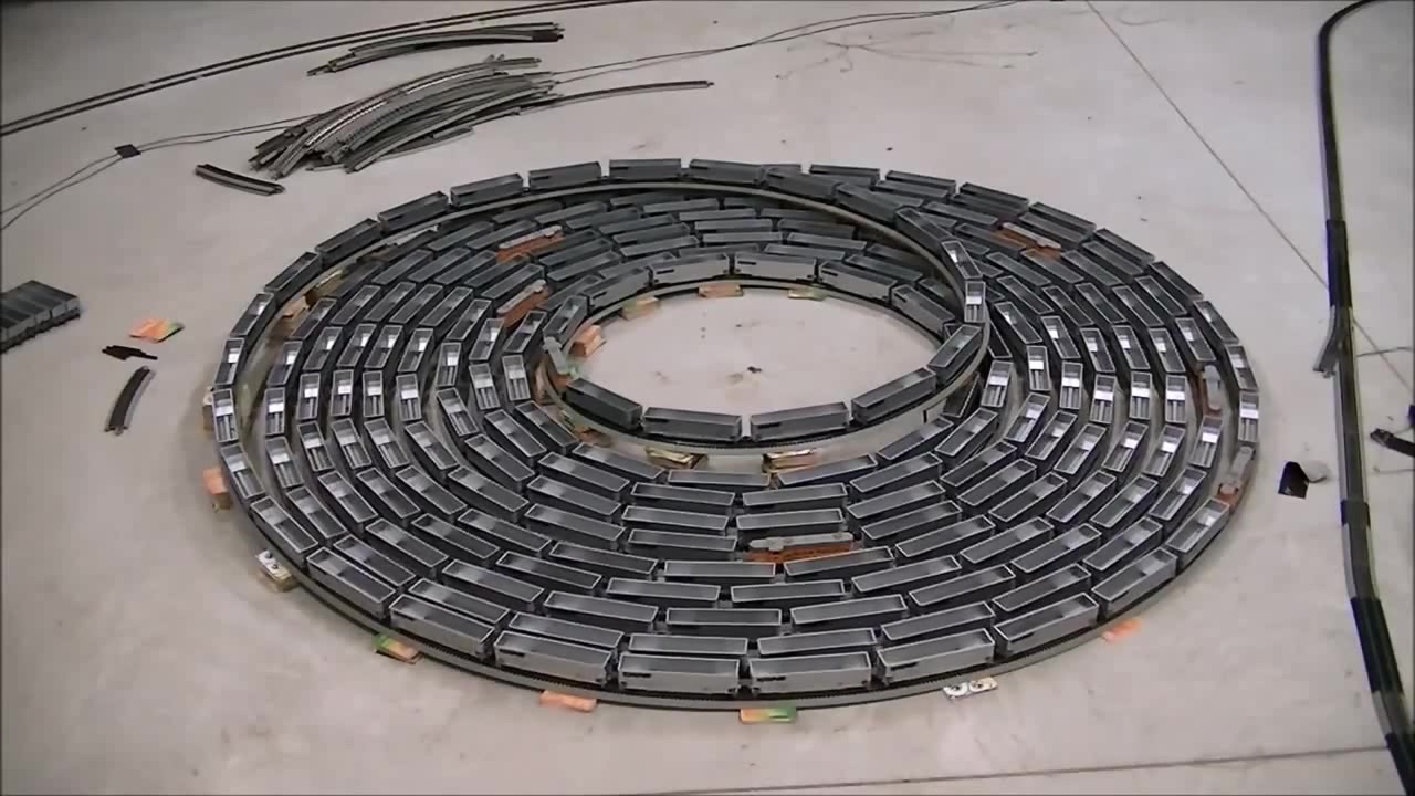 Fast endless Bi-directional spiral with an ho scale train ( side view )