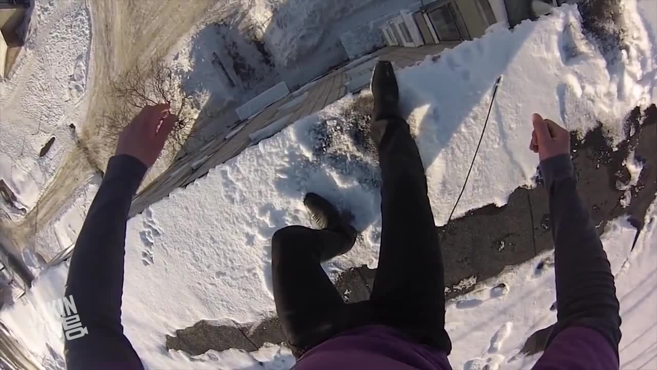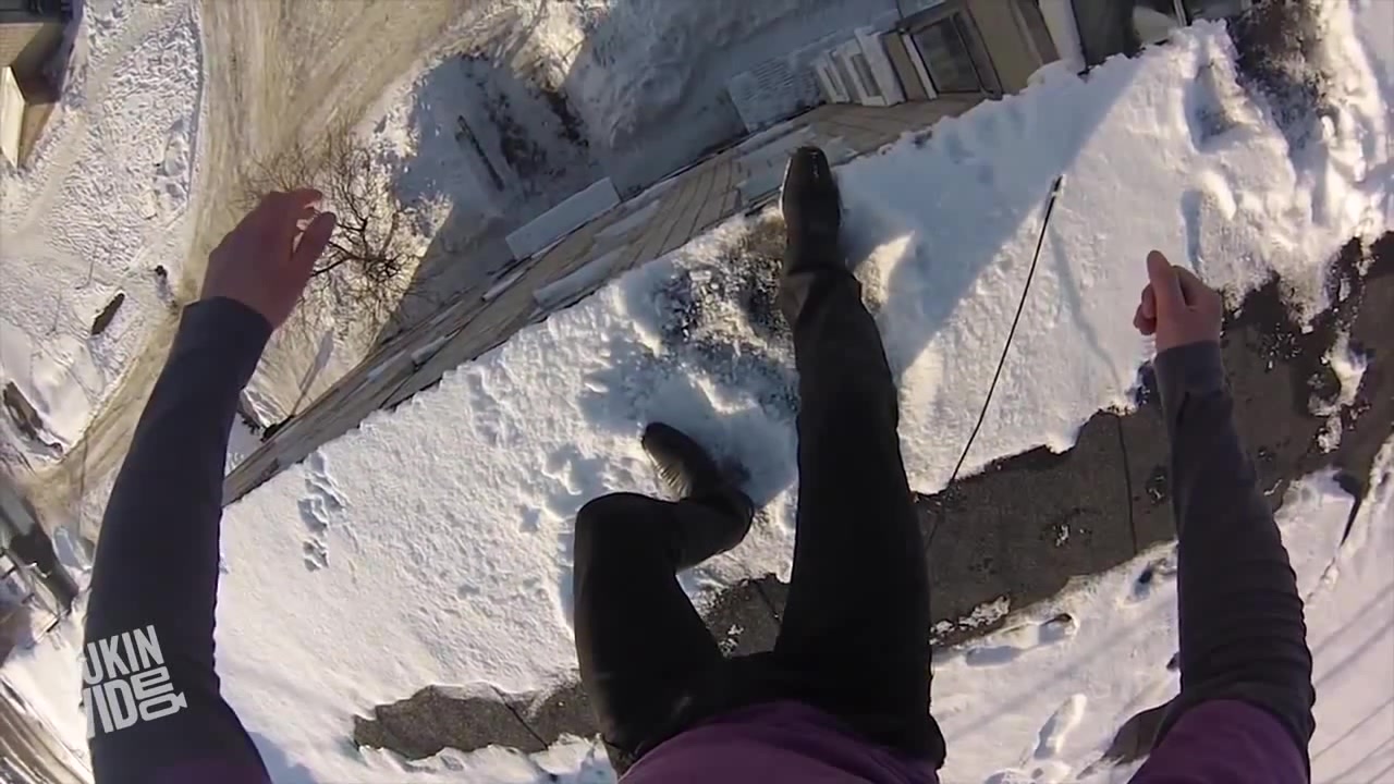 Russian Daredevil Jumps Off Building Into the Snow | Roof Jump
