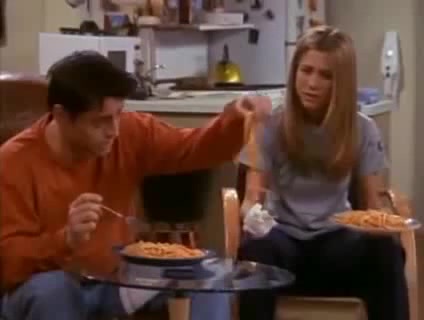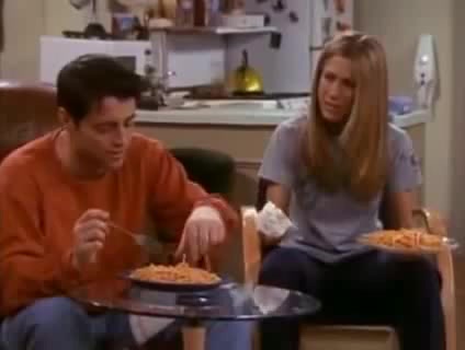Joey and Rachel eating spaghetti (From Friends)