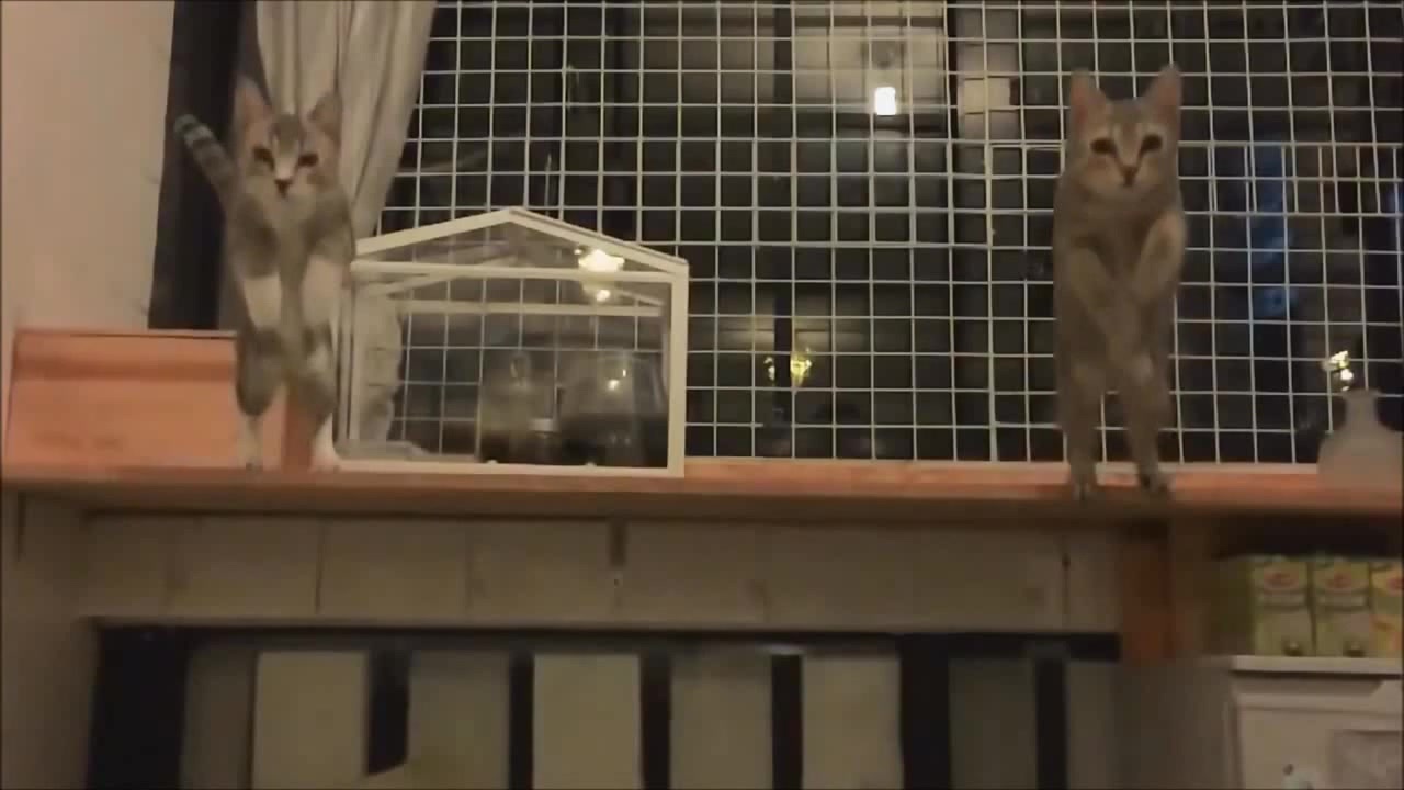 Synchronized cats jumping