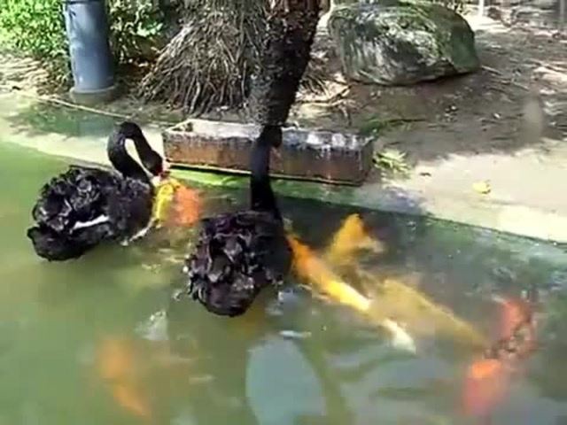 swans feed fish