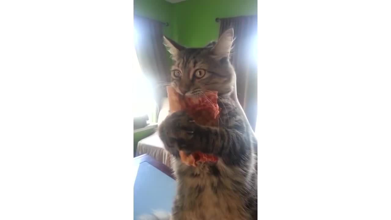 Hungry Cat Won't Let Go Of Pizza Slice | CatNips