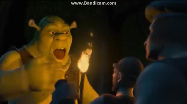 Shrek scares off the villagers