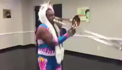 Xavier Woods plays Fandango s theme song on his trombone