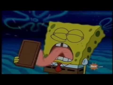 Spongebob licks a chocolate bar vigorously for 7 minutes