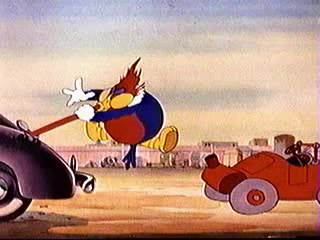 Woody Woodpecker gets inflated like a balloon - from Ration Bored (1943)