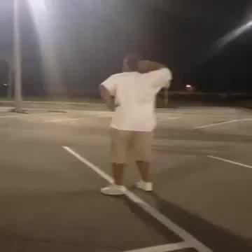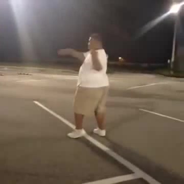 A fat guy dancing in a sexy manner at a parking lot--FUNNNY-