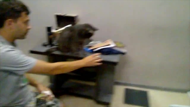 Сat pushes stuff off table