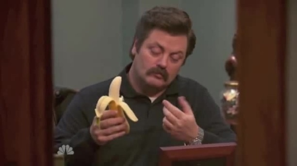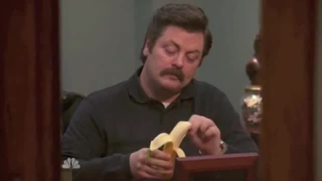 Ron Swanson tries to eat a banana